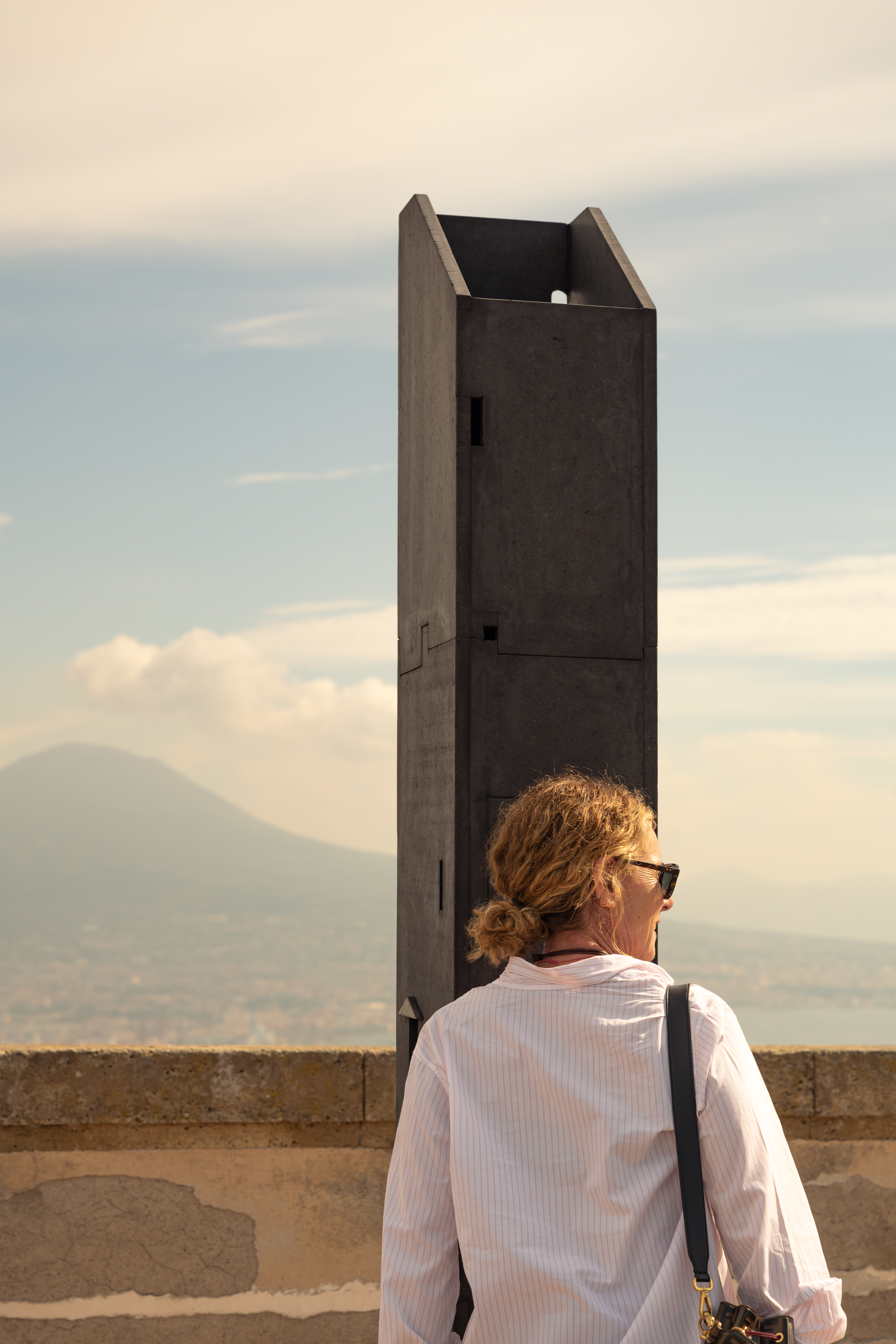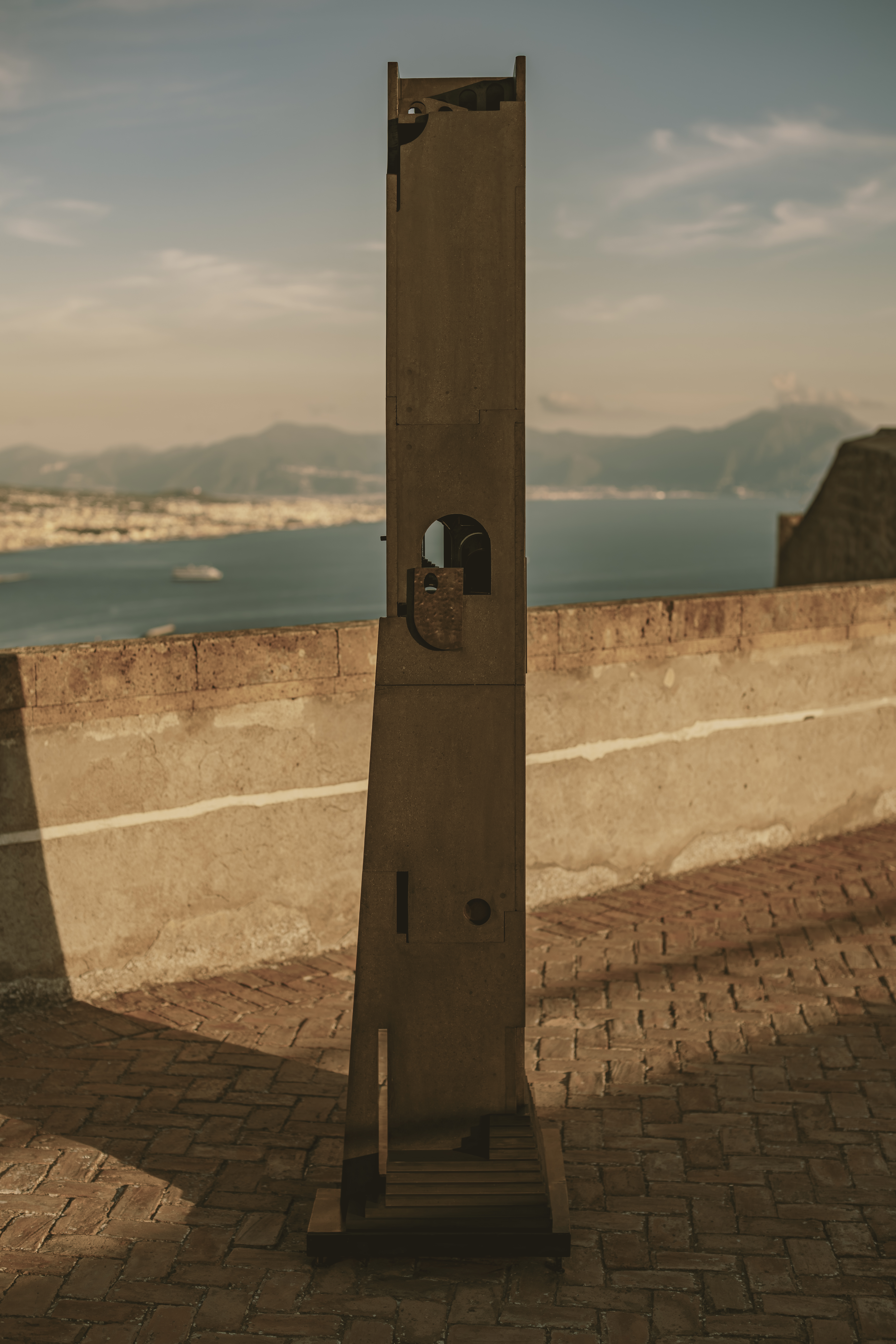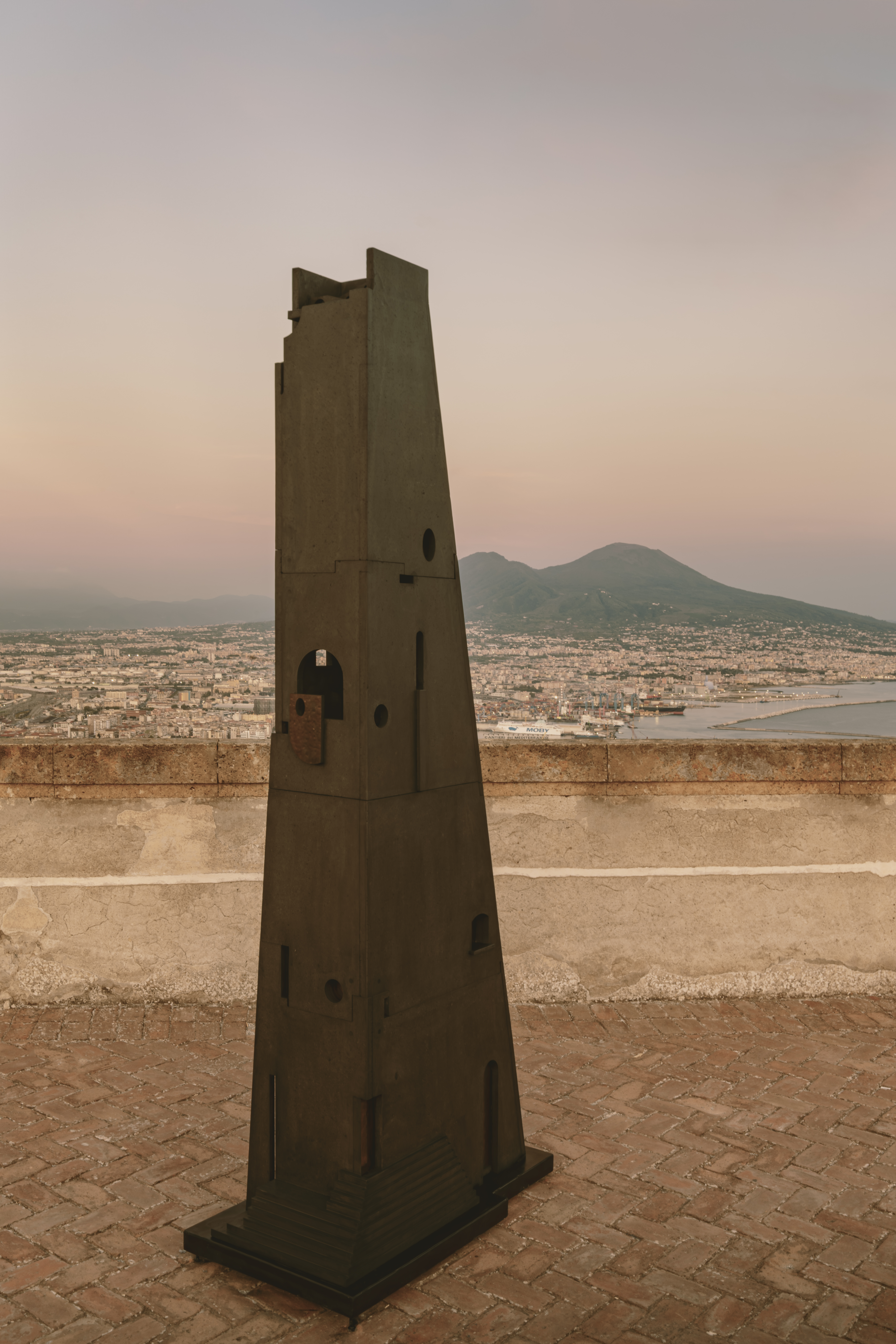 Composed of totemic elements and micro-architectures, the installation subverts the scale of the city, the volcano and the gulf and becomes a lens where the symbolic and the material merge into one coherent whole.